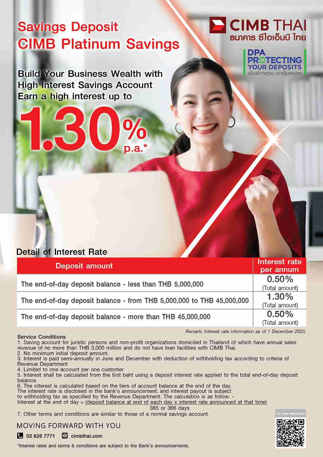 For further inquiries, please visit any CIMB THAI Bank branch nationwide or contact the CIMB THAI Care Center, available daily.