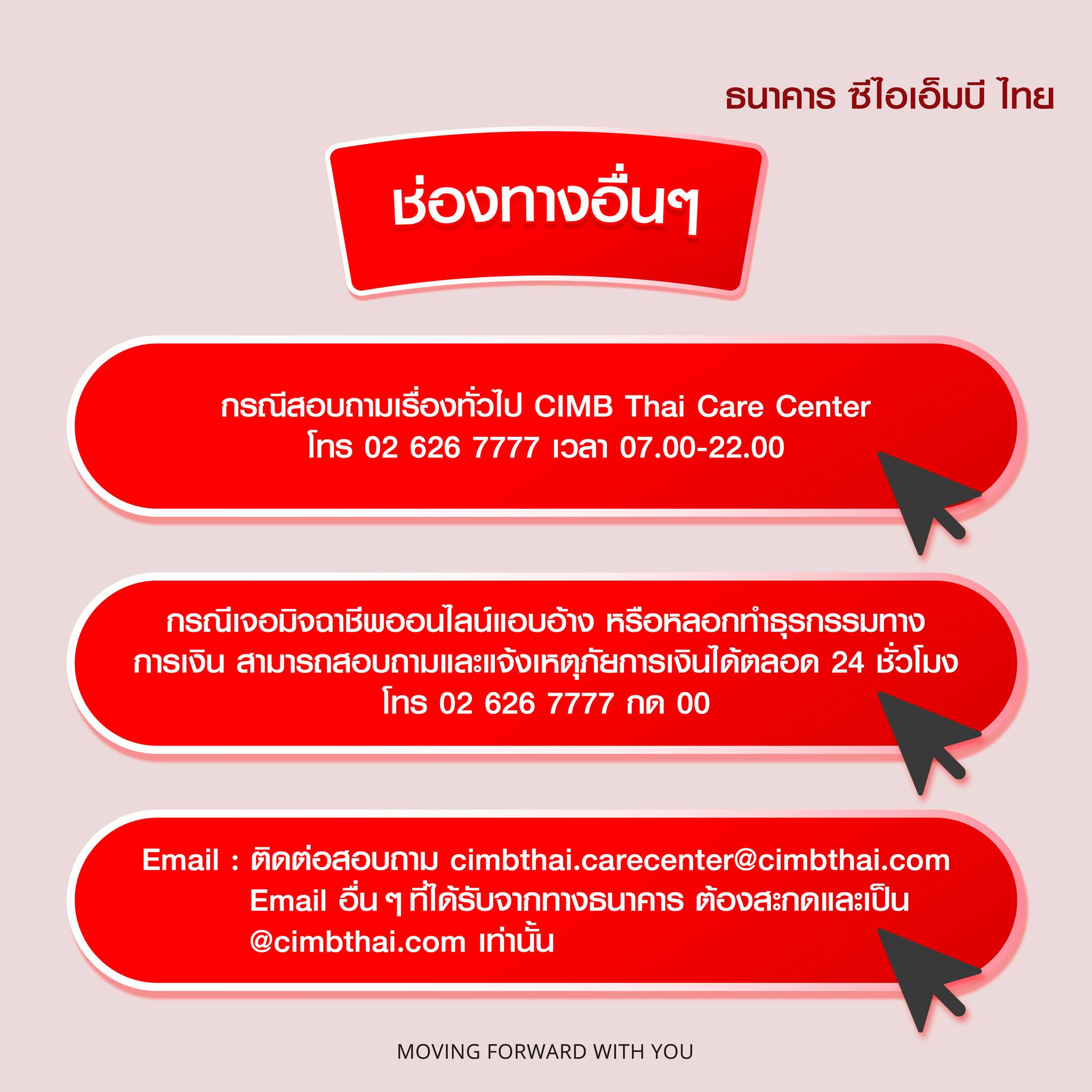 เช็กก่อนเชื่อ ช่องทางหลัก CIMB THAI Bank ที่มีไว้สำหรับการติดต่อสื่อสารเท่านั้น